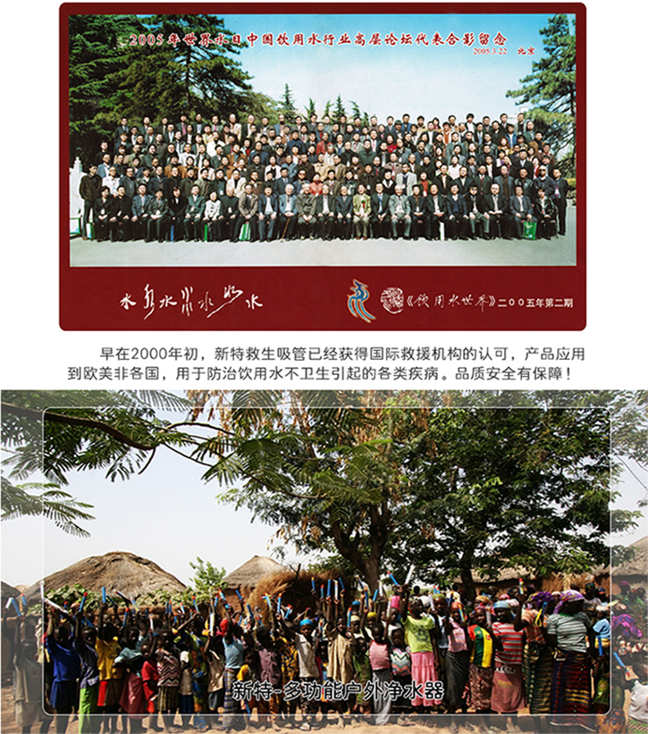 • C3型应急救生超迷你吸管式净水器 户外生存净水吸管 C3型应急救生超迷你吸管式净水器 户外生存净水吸管 C3型迷你野外个人生存净水吸管采用高聚碘杀菌树脂过滤层+多功能环保型复合纤维碳+碳纤维活性炭过滤层,规格尺寸125×Φ12mm,重量为净重10g毛总12g,颜色有橘黄色,白色等多种可选,采用透明OPP袋独立包装,使用寿命70L.