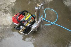 动力系统由汽油机和水泵组成。汽油机为国产4冲程汽油机,它连接水泵组成汽油机水泵组。动力系统最大输出水压0.4~0.5MPa,最大流量为10~15L/min。一次加满汽油后,汽油机使用时间为2小时。