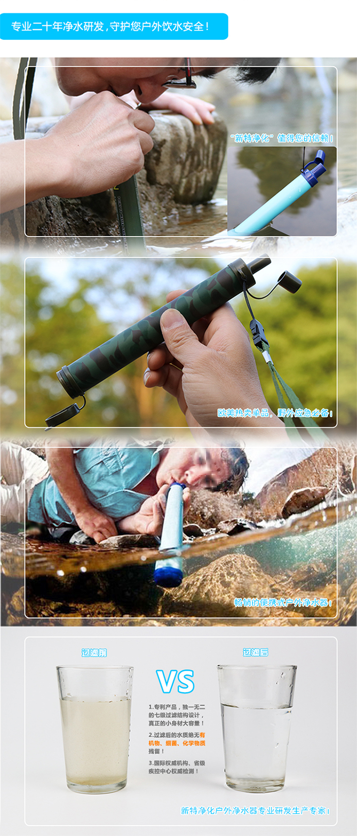B3型个人便携式户外净水器 野外生存应急净水吸管